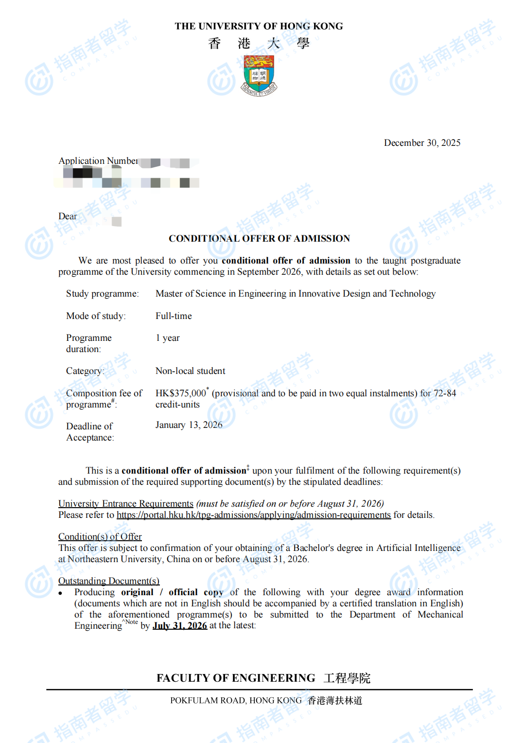 香港大學(xué)創(chuàng)新設(shè)計(jì)與科技(工程)理學(xué)碩士研究生offer一枚