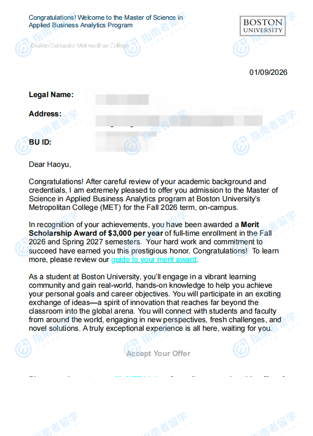 波士頓大學(xué)應(yīng)用商業(yè)分析碩士研究生offer一枚
