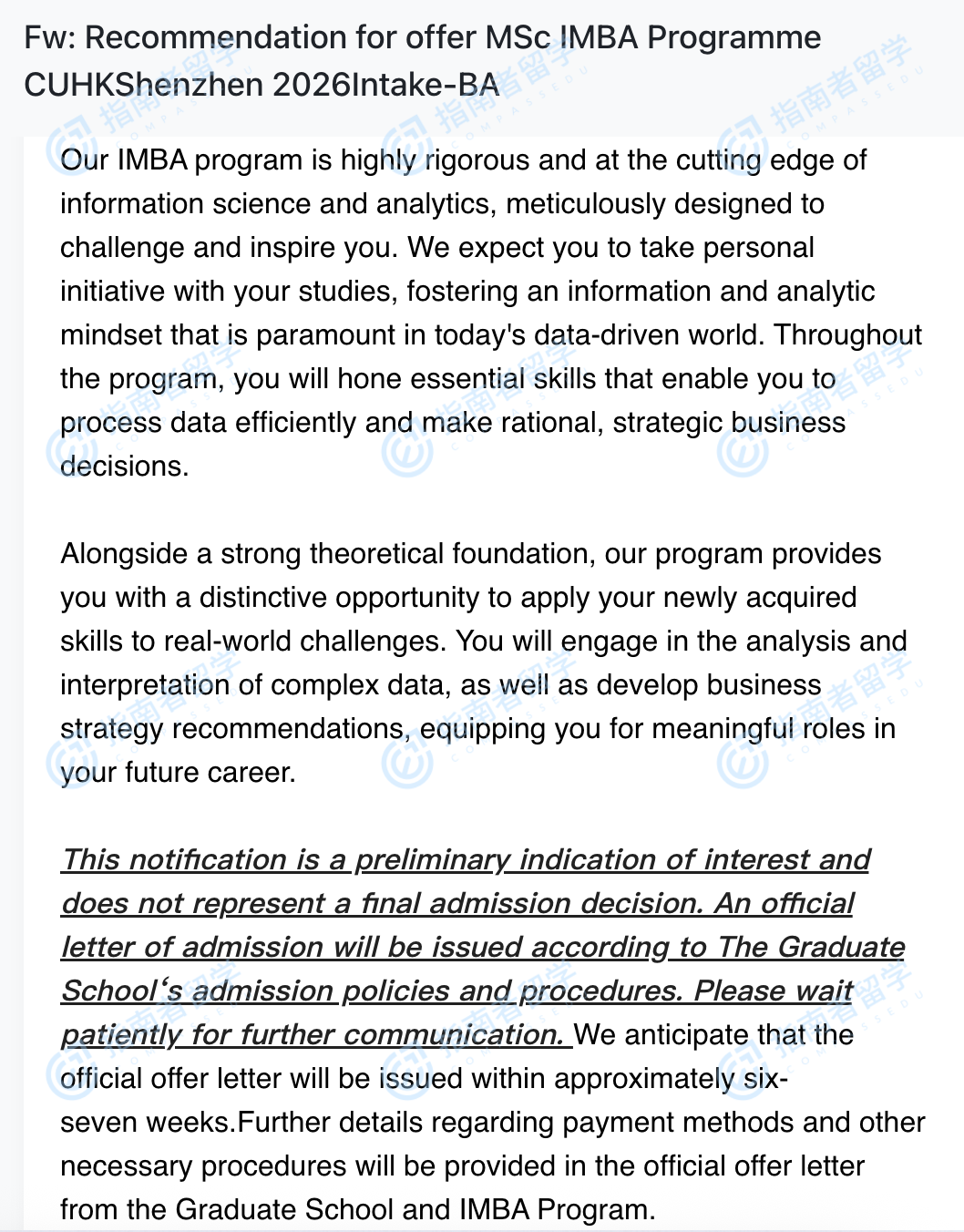 香港中文大學(xué)信息管理 & 商業(yè)分析理學(xué)碩士(CUHK-Shenzhen)研究生offer一枚