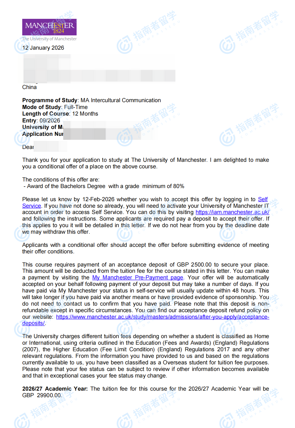 曼徹斯特大學(xué)跨文化傳播文學(xué)碩士研究生offer一枚