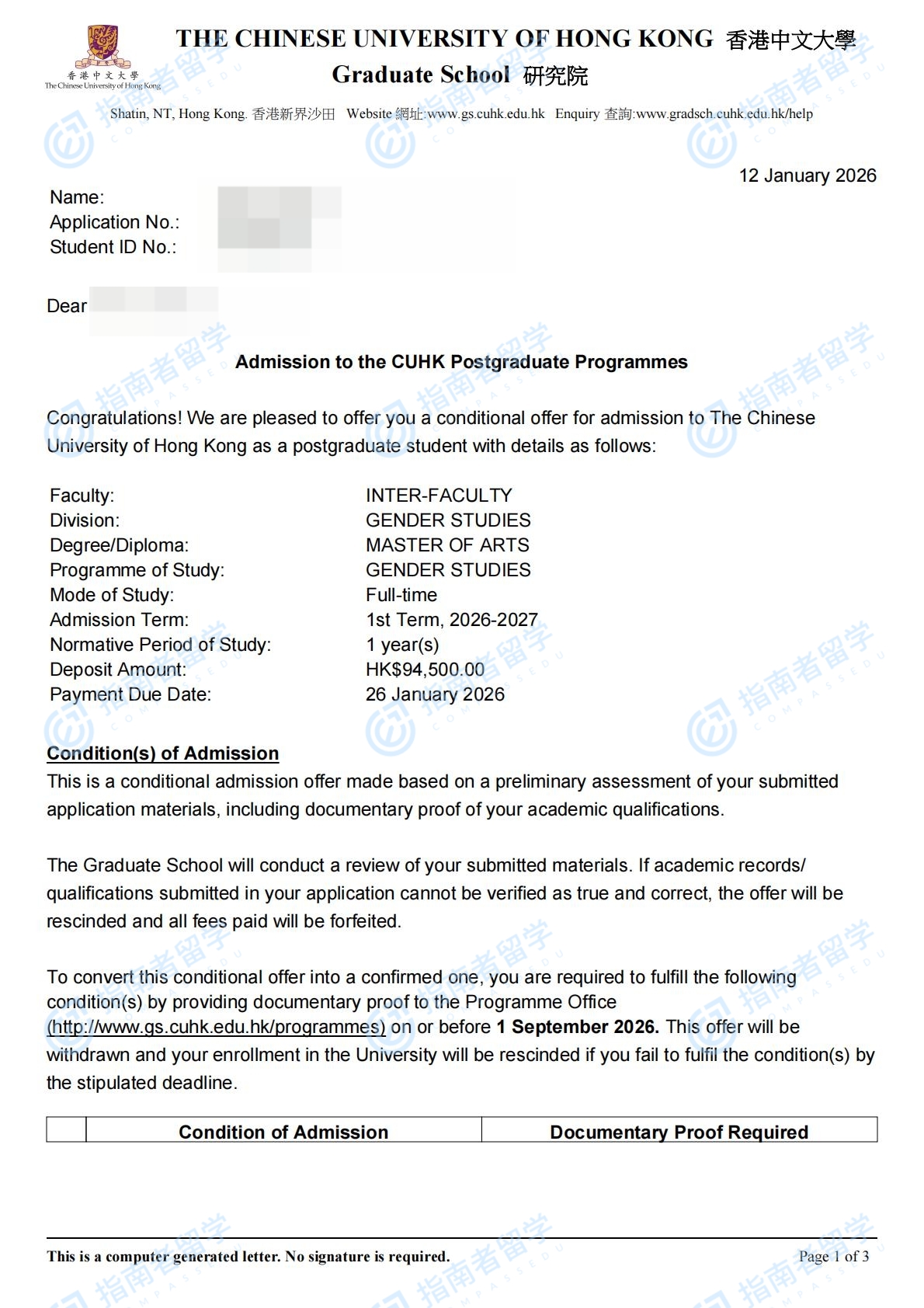 香港中文大學(xué)性別研究文學(xué)碩士研究生offer一枚