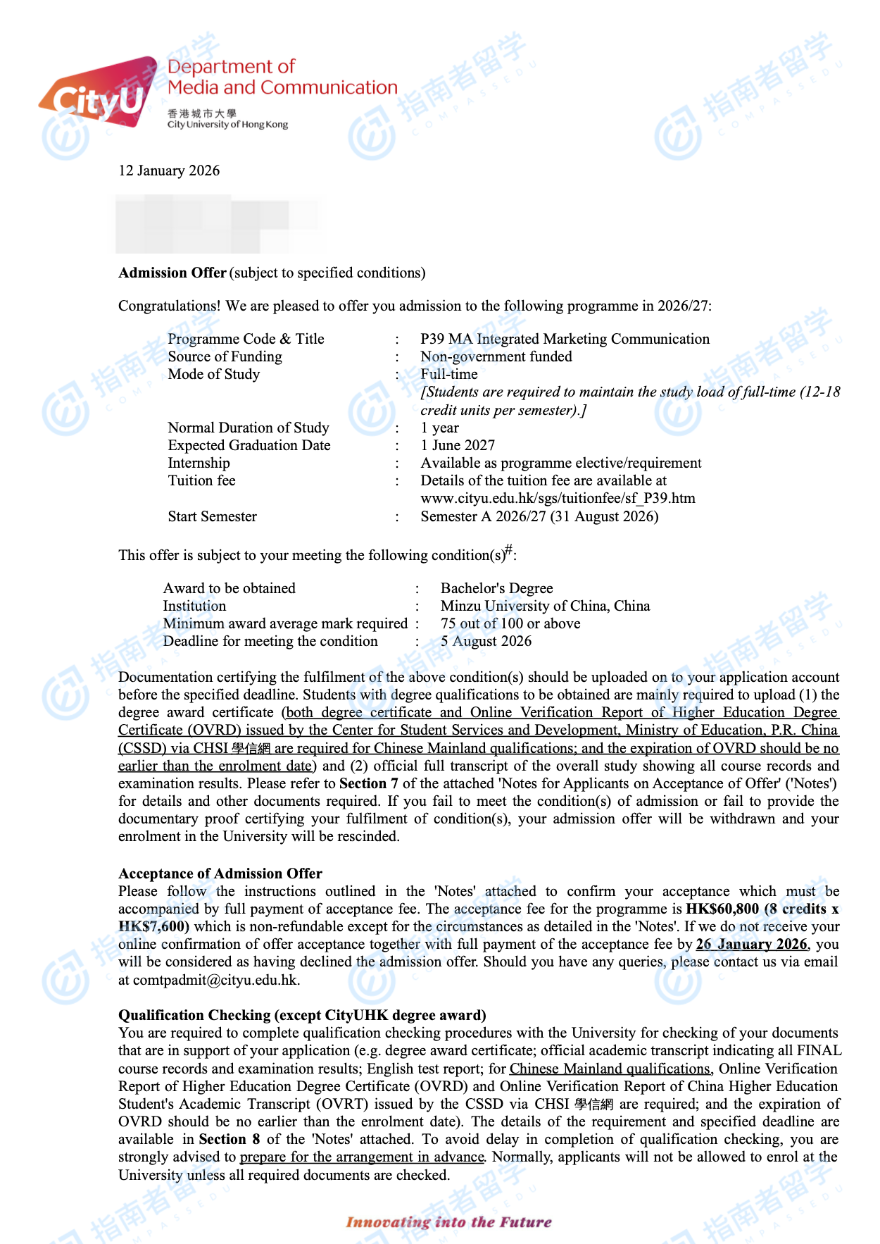 香港城市大學(xué)整合營銷傳播文學(xué)碩士研究生offer一枚