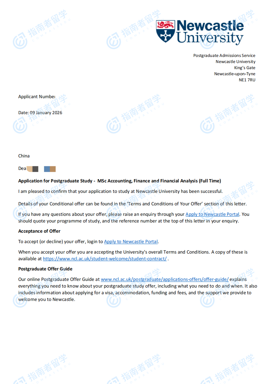 紐卡斯?fàn)柎髮W(xué)(英國(guó))會(huì)計(jì)、金融與財(cái)務(wù)分析理學(xué)碩士研究生offer一枚