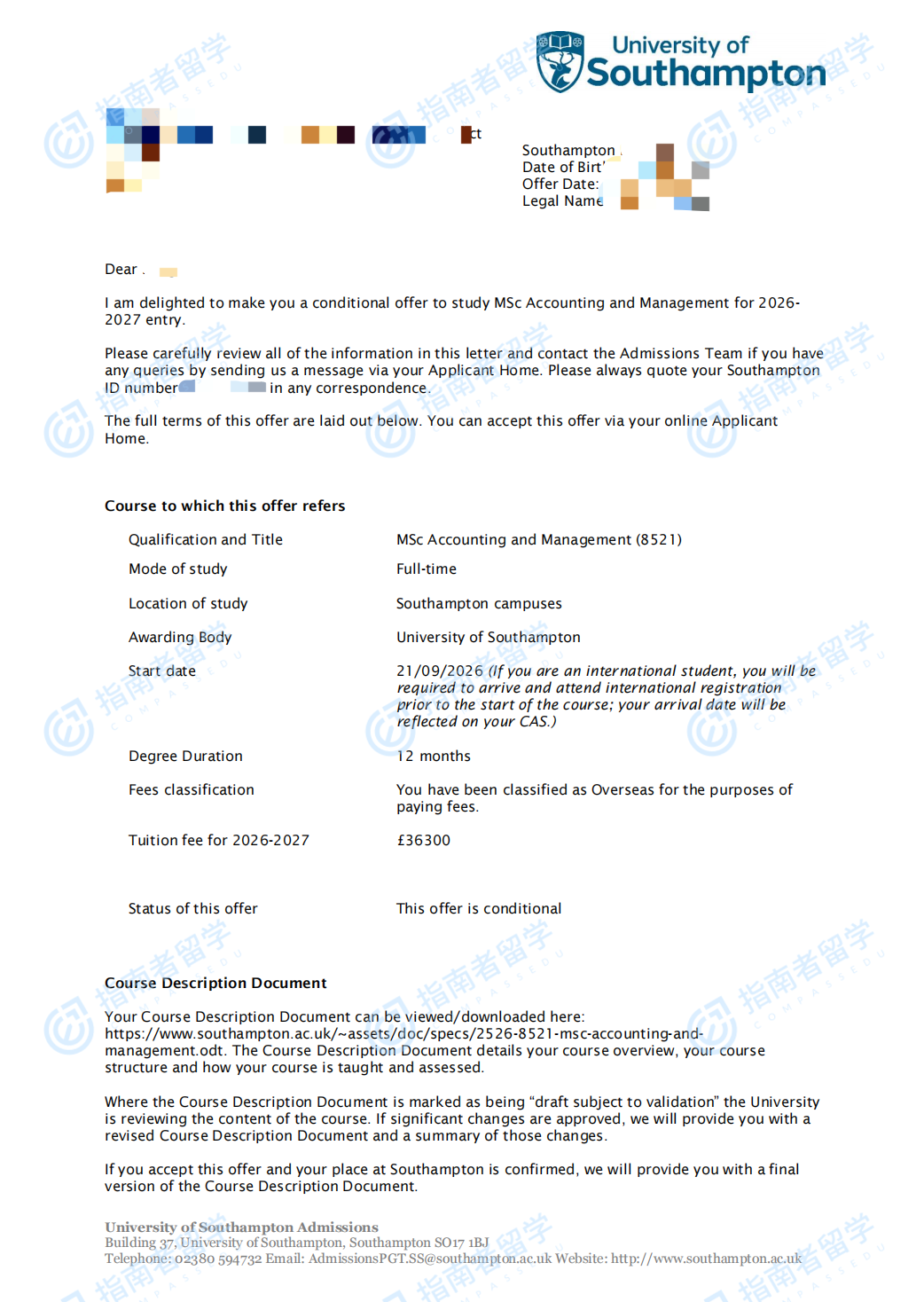 南安普頓大學(xué)會(huì)計(jì)與管理理學(xué)碩士研究生offer一枚