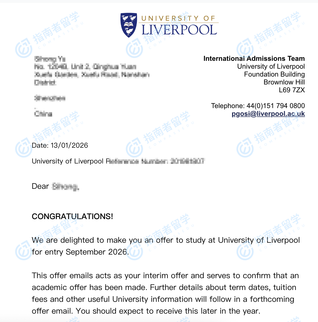 利物浦大學(xué)電信與無線系統(tǒng)(工程)理學(xué)碩士研究生offer一枚