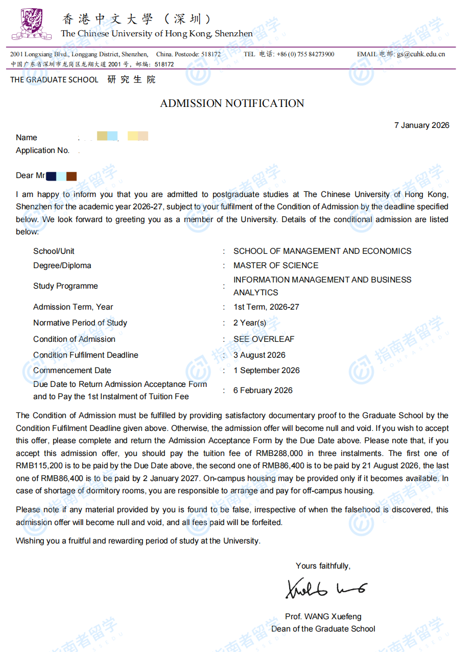 香港中文大學信息管理 & 商業(yè)分析理學碩士(CUHK-Shenzhen)研究生offer一枚