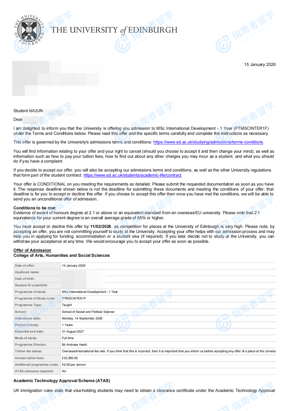愛丁堡大學(xué)國際發(fā)展理學(xué)碩士研究生offer一枚