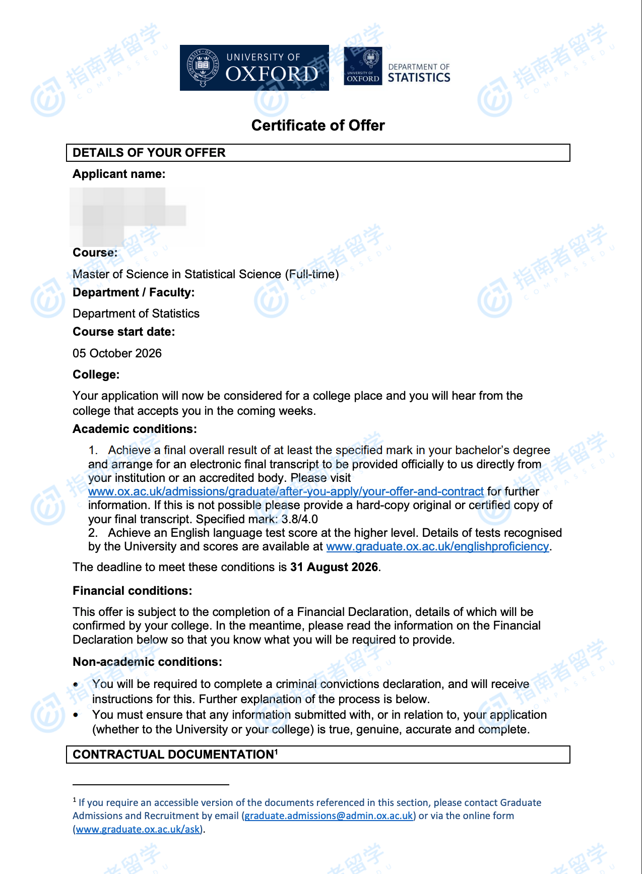 牛津大學(xué)統(tǒng)計(jì)科學(xué)理學(xué)碩士研究生offer一枚