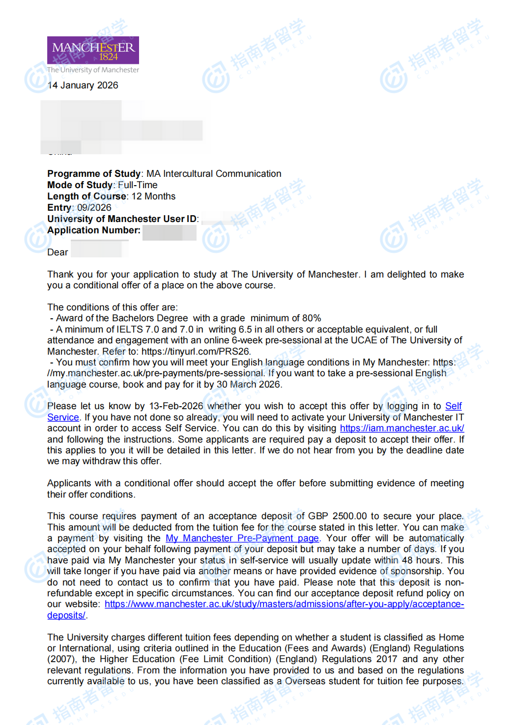 曼徹斯特大學(xué)跨文化傳播文學(xué)碩士研究生offer一枚