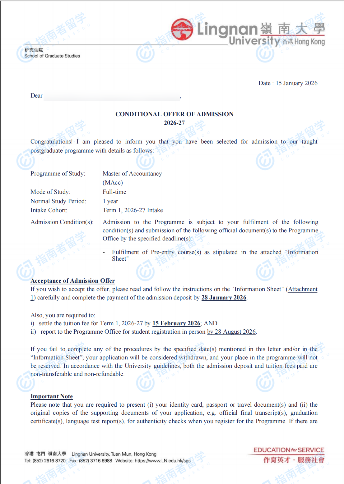 香港嶺南大學(xué)會計(jì)學(xué)碩士研究生offer一枚