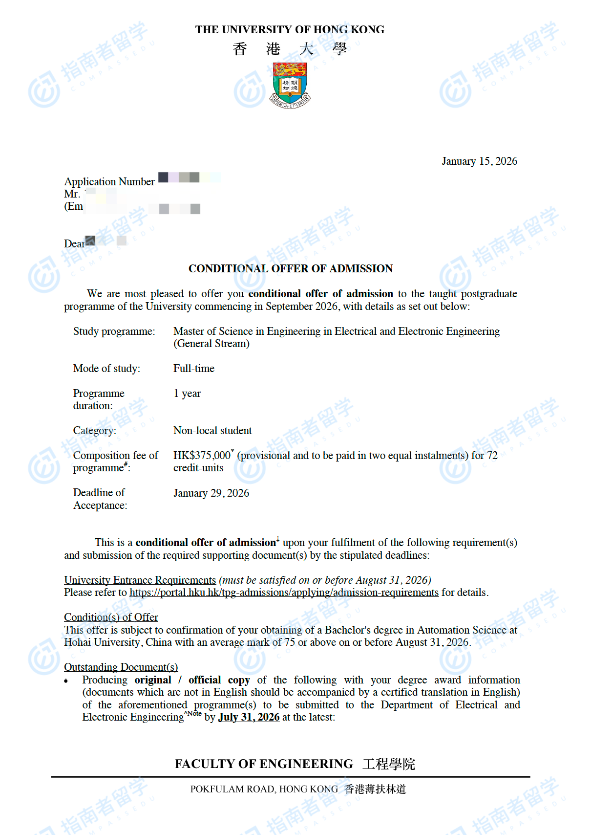 香港大學電氣與電子工程(工程)理學碩士 - 常規(guī)方向研究生offer一枚