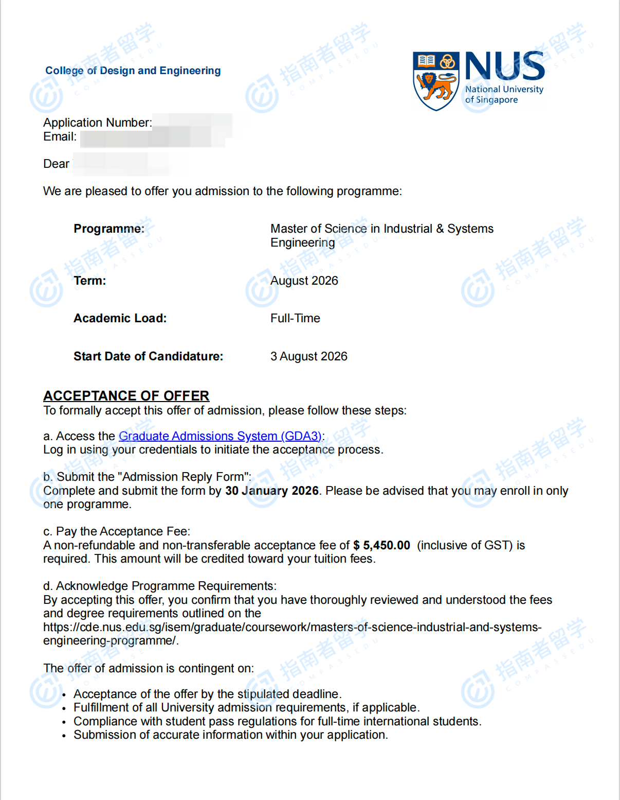 新加坡國(guó)立大學(xué)工業(yè)與系統(tǒng)工程理學(xué)碩士研究生offer一枚