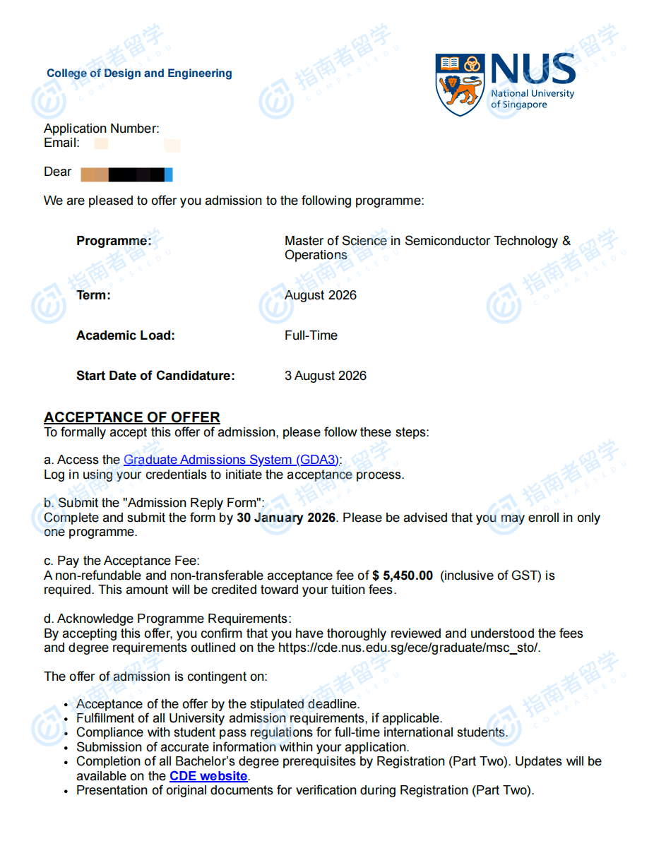 新加坡國(guó)立大學(xué)半導(dǎo)體技術(shù)與運(yùn)作理學(xué)碩士研究生offer一枚