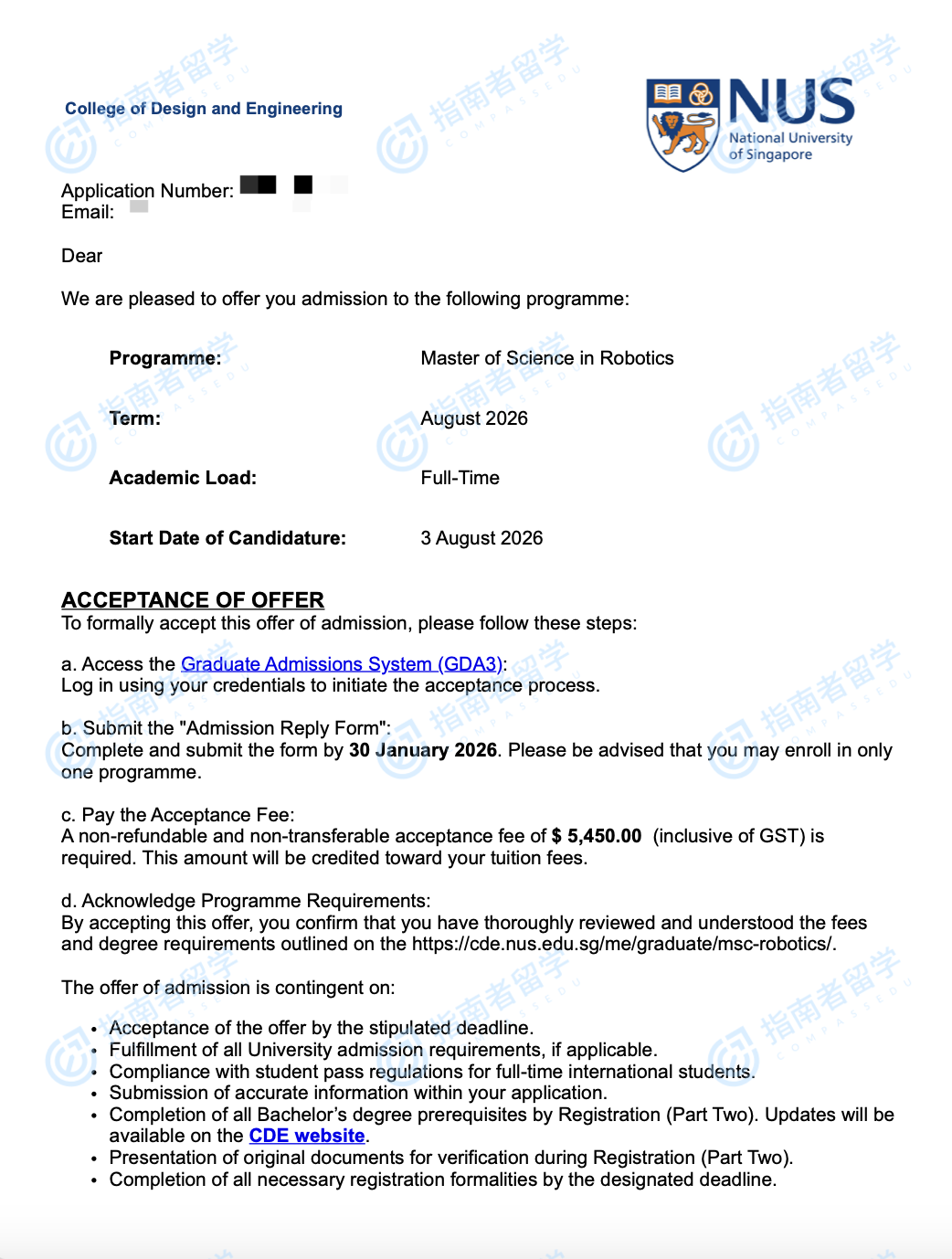 新加坡國立大學(xué)機(jī)器人學(xué)理學(xué)碩士研究生offer一枚