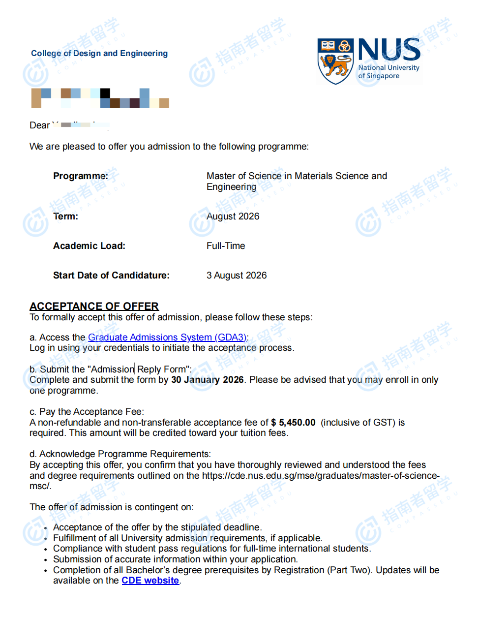 新加坡國立大學(xué)材料科學(xué)與工程理學(xué)碩士研究生offer一枚