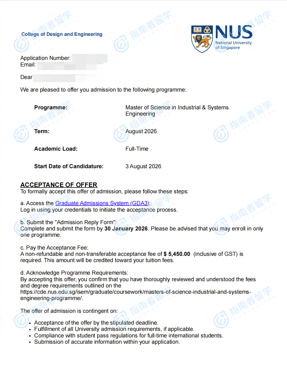 新加坡國立大學工業(yè)與系統(tǒng)工程理學碩士研究生offer一枚