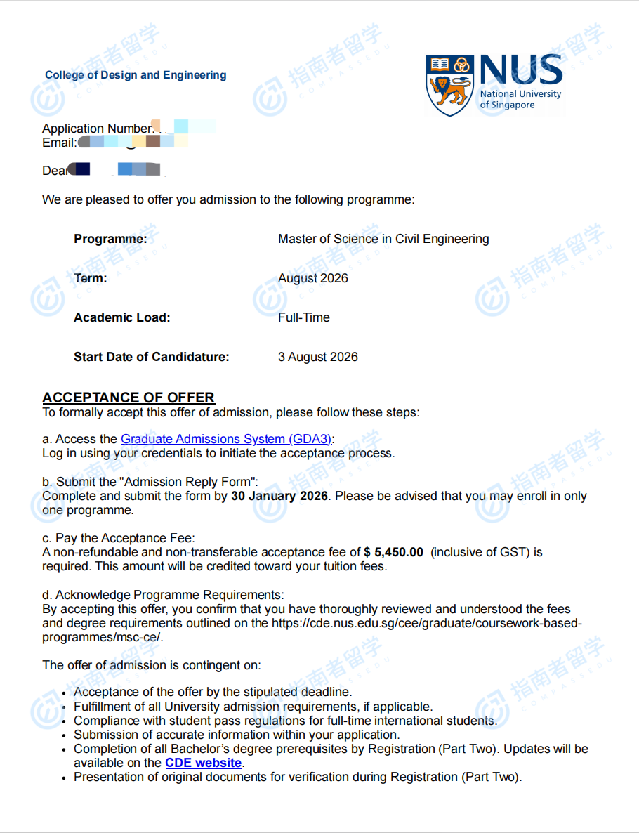 新加坡國立大學(xué)土木工程理學(xué)碩士研究生offer一枚