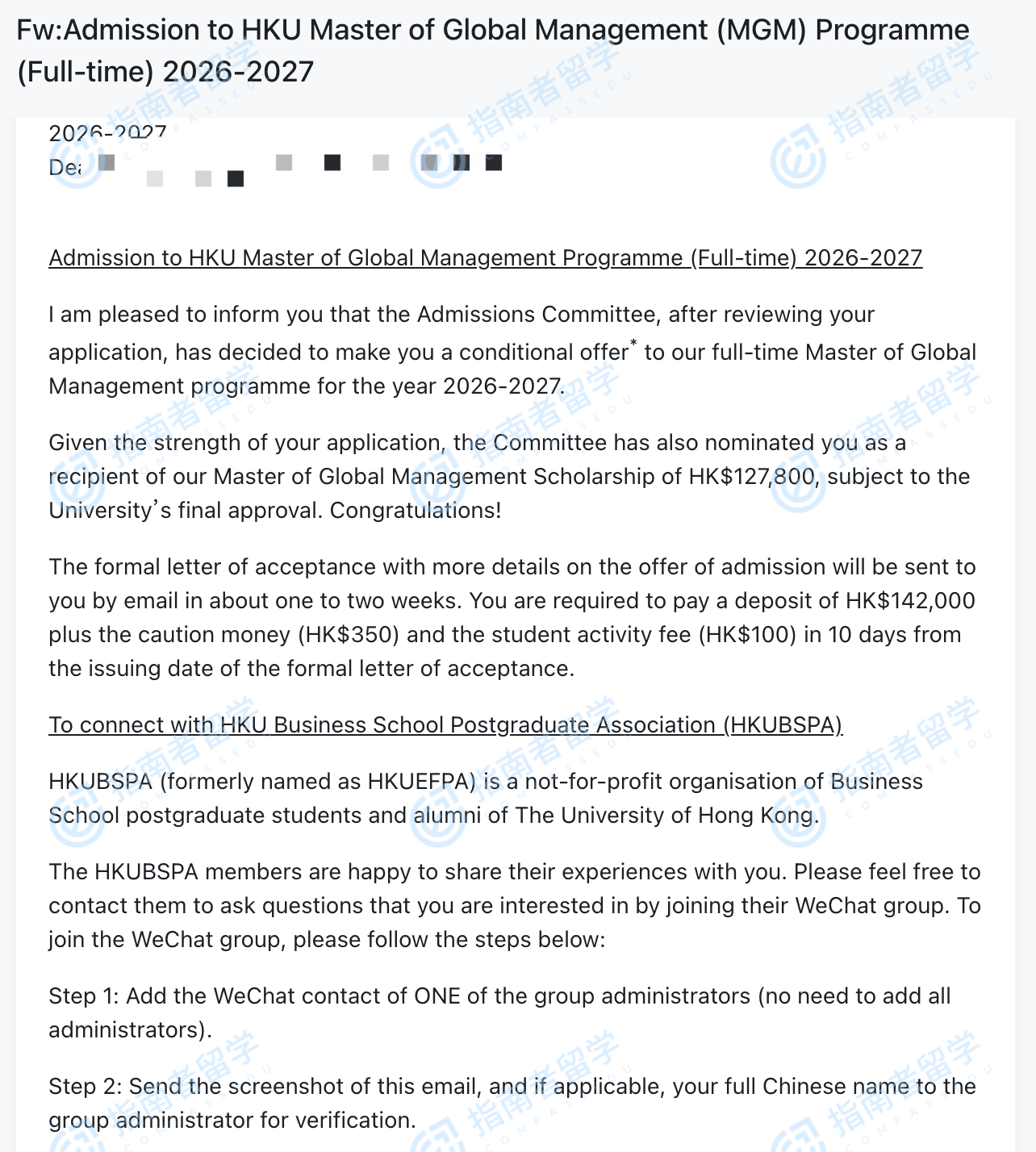 香港大學環(huán)球管理學碩士研究生offer一枚