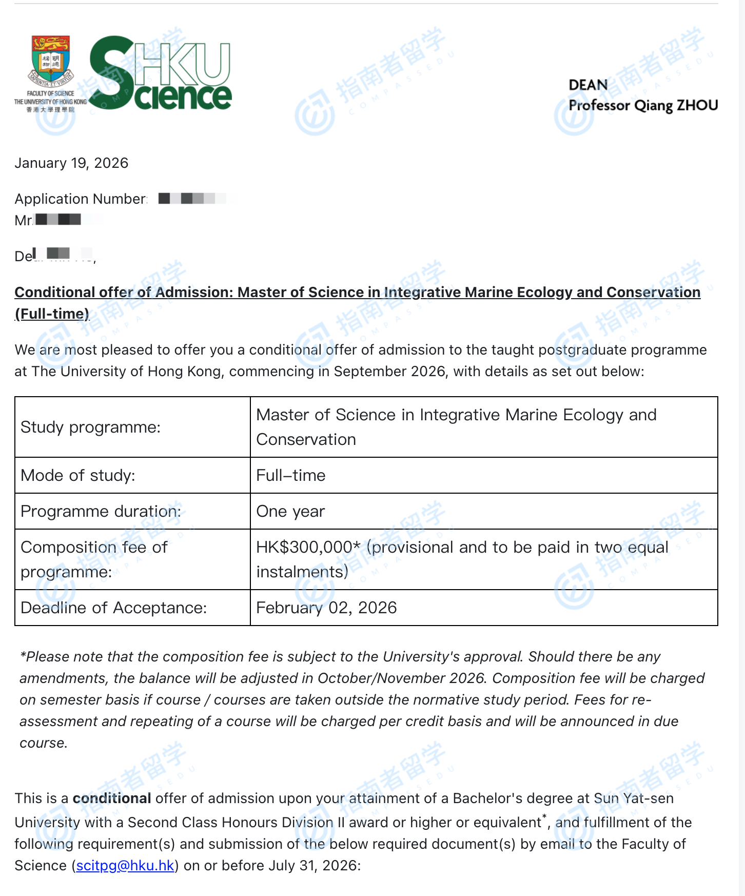香港大學(xué)綜合海洋生態(tài)與保護(hù)理學(xué)碩士研究生offer一枚