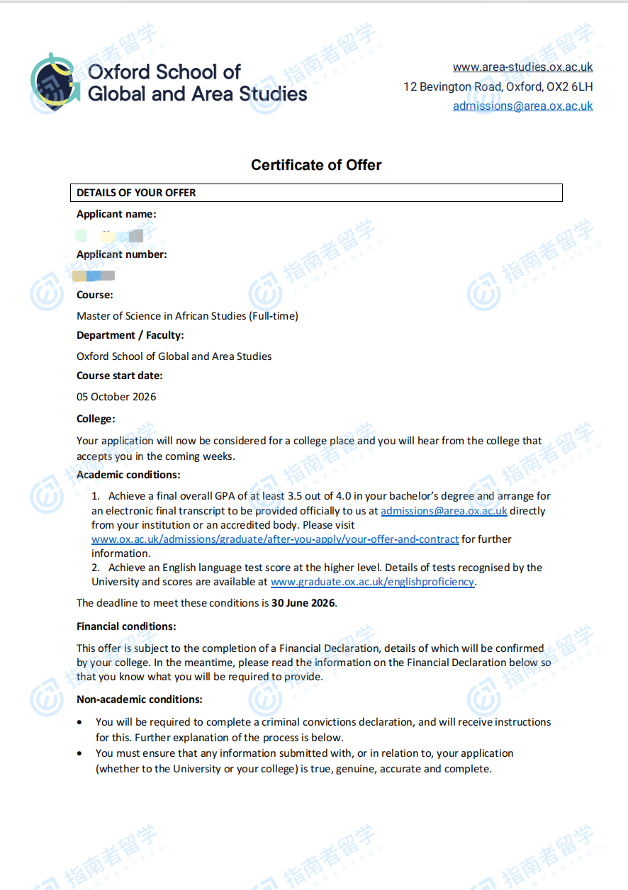 具有一等或strong 2:1榮譽學位。對于擁有美國學士學位的申請者,要求GPA3.55/4。需要人文或社會科學相關學科背景<br> 在相關領域擁有豐富的專業(yè)經驗或在非洲國家工作的經驗將被考慮;最好熟悉非洲或其他發(fā)展中國家,但非必需;無需發(fā)表出版物<br> 需要一篇written work(不超過2000字)