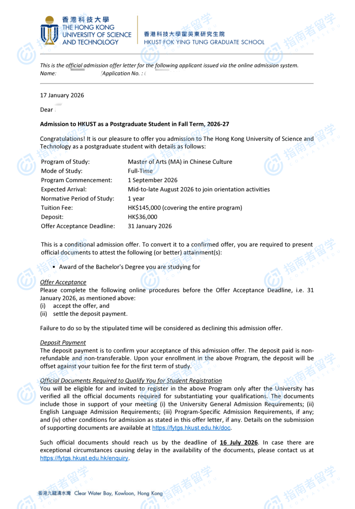 香港科技大學(xué)中國(guó)文化文學(xué)碩士研究生offer一枚