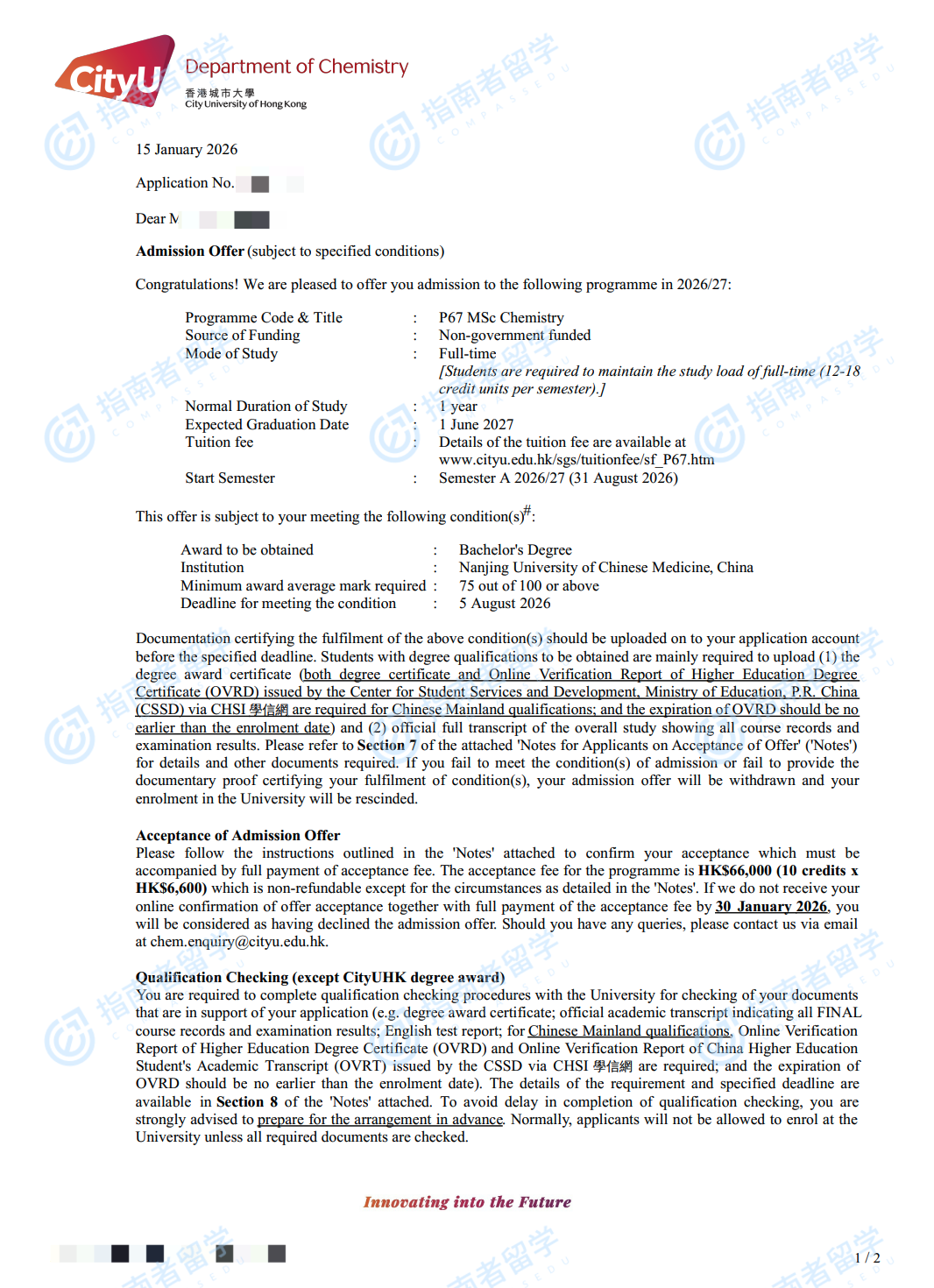 香港城市大學(xué)化學(xué)理學(xué)碩士研究生offer一枚