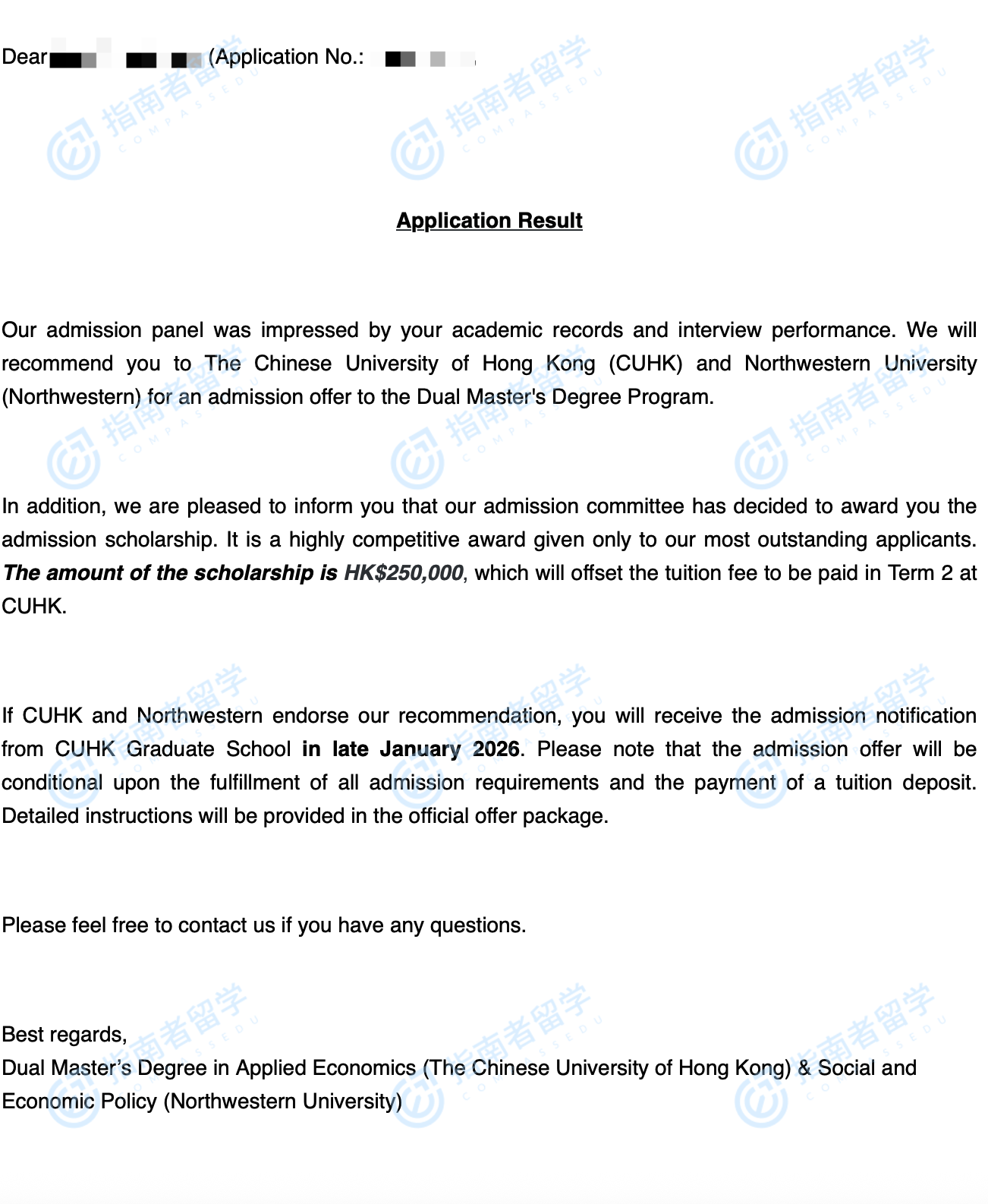 西北大學(xué)(美國)應(yīng)用經(jīng)濟(jì)學(xué)(中大)與社會與經(jīng)濟(jì)政策(西北大學(xué))雙碩士研究生offer一枚
