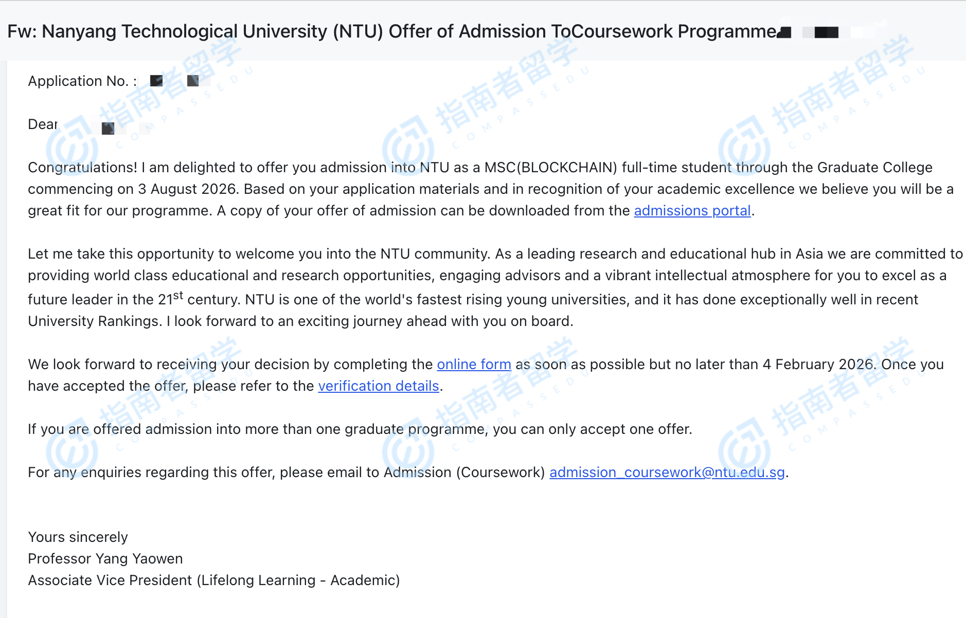 南洋理工大學(xué)區(qū)塊鏈理學(xué)碩士研究生offer一枚