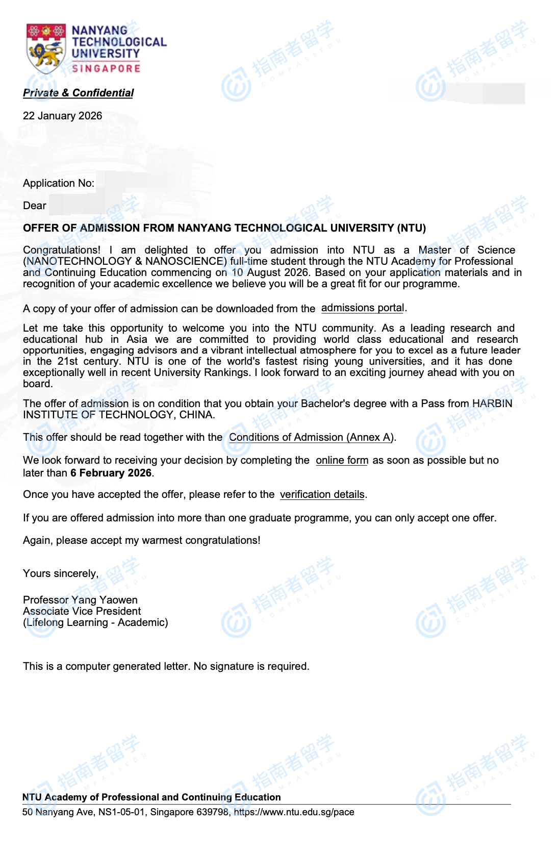 南洋理工大學(xué)納米技術(shù)與納米科學(xué)理學(xué)碩士研究生offer一枚