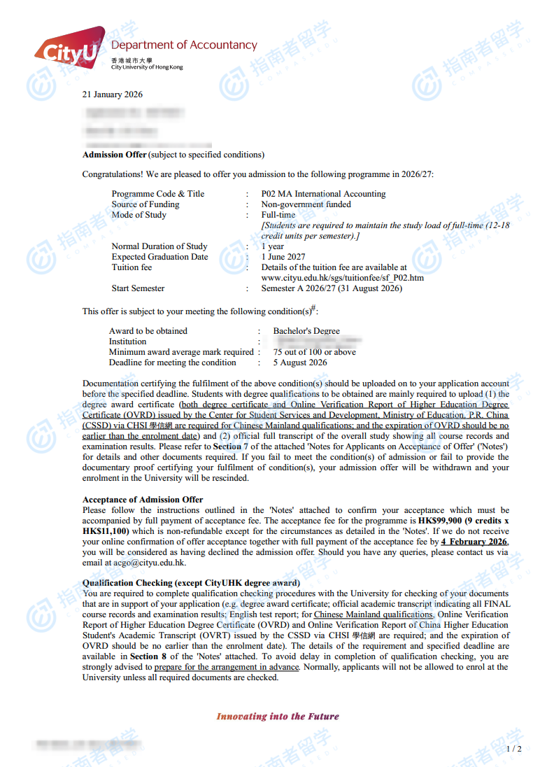 香港城市大學(xué)國(guó)際會(huì)計(jì)學(xué)文學(xué)碩士研究生offer一枚