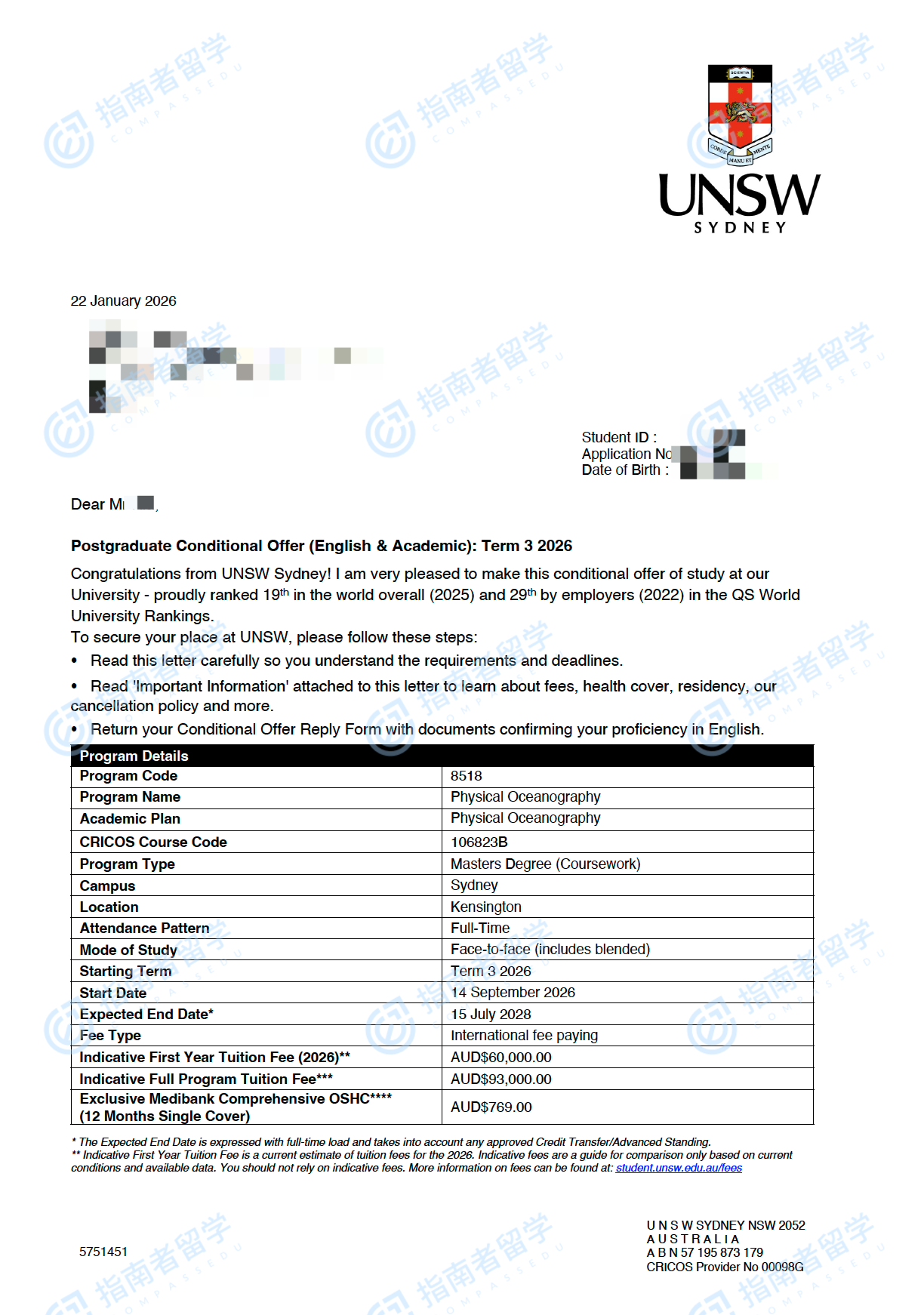 新南威爾士大學(xué)物理海洋學(xué)碩士研究生offer一枚