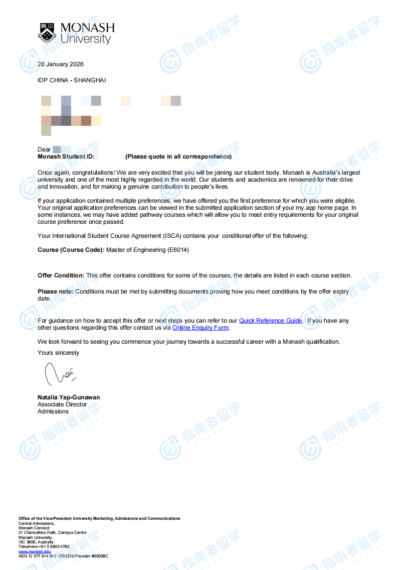 莫納什大學(xué)信息技術(shù)碩士(2年制)研究生offer一枚
