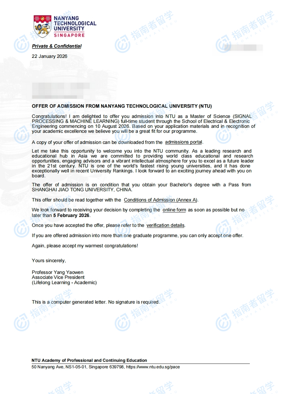 南洋理工大學(xué)信號處理和機器學(xué)習(xí)理學(xué)碩士研究生offer一枚
