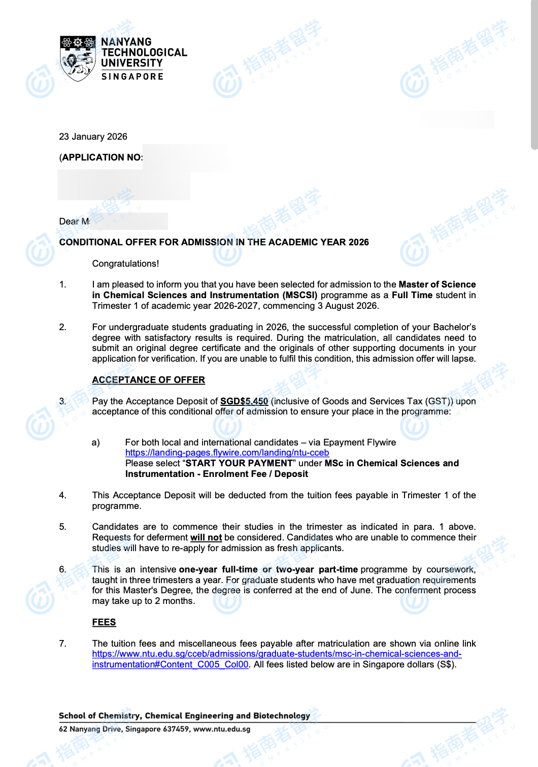 南洋理工大學(xué)化學(xué)科學(xué)與儀器理學(xué)碩士研究生offer一枚