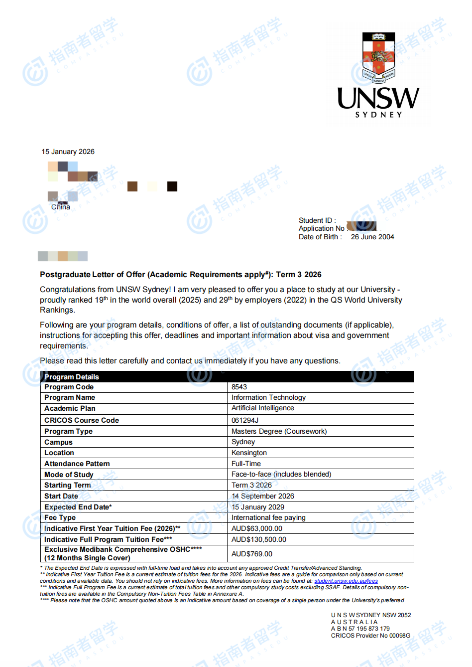 成功的申請者將通過Graduate Certificate in Information Technology/Master of Information Technology pathway進入Master of Information Technology課程,學生在完成18個學分的基礎課程后可轉入Master of Information Technology,總學習時間與具有相關背景的學生相同(2年/96 UoC),該課程不需要單獨申請,非相關背景的申請者必須申請Master of Information Technology才能被考慮打包錄取<br>