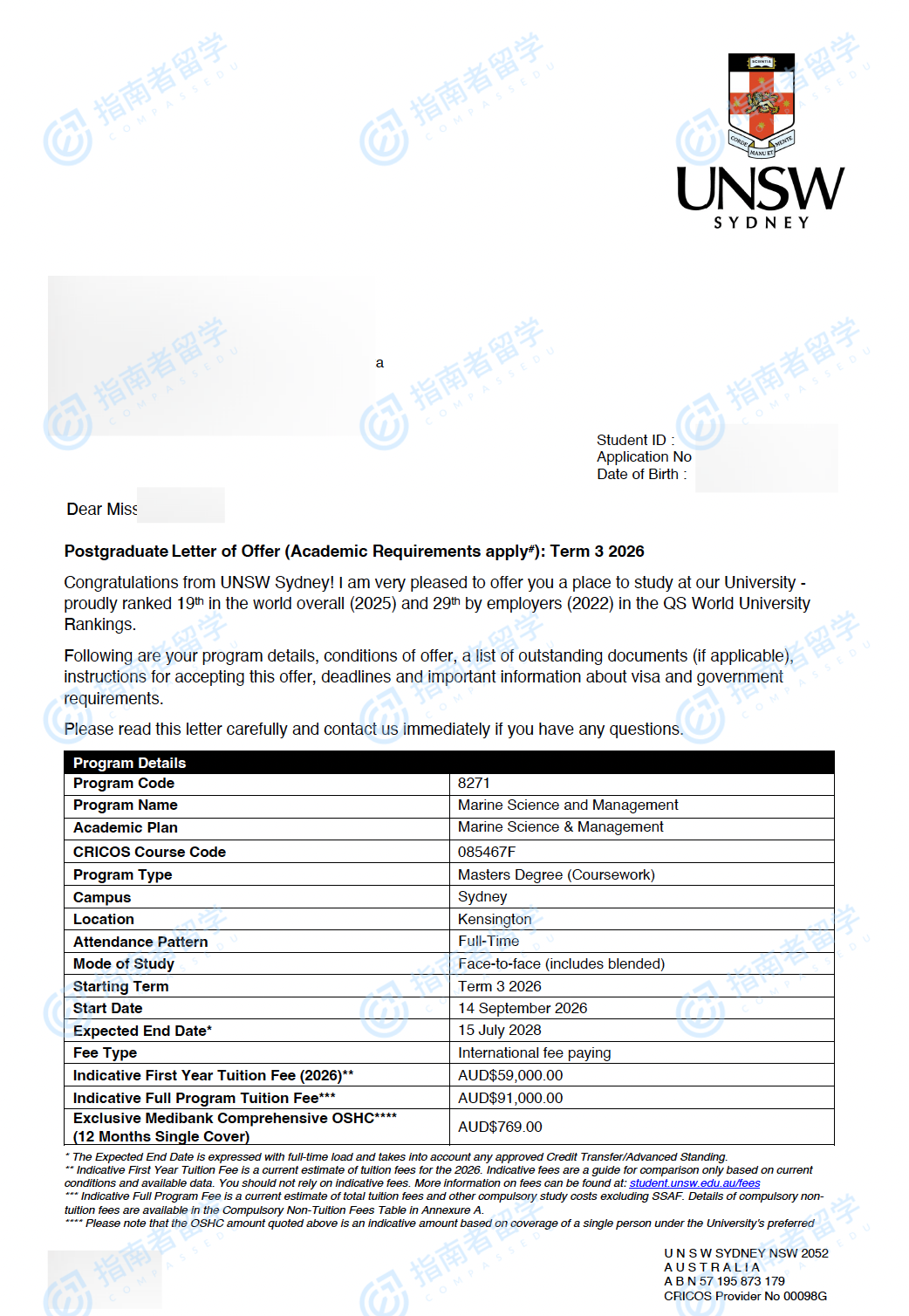 新南威爾士大學(xué)海洋科學(xué)與管理碩士研究生offer一枚