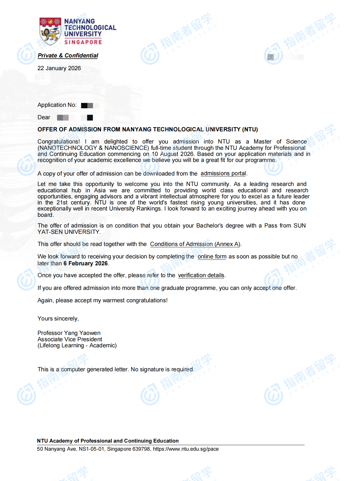 南洋理工大學(xué)納米技術(shù)與納米科學(xué)理學(xué)碩士研究生offer一枚