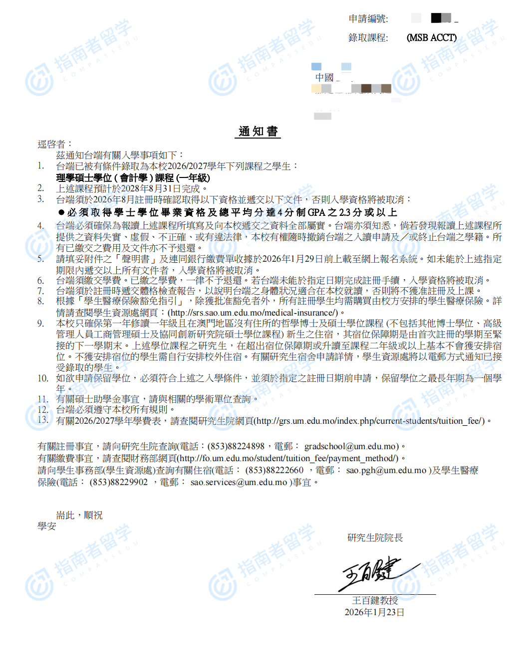 持有澳門大學認可的學士學位或同等學歷。申請人也可能被要求具備其他知識或專業(yè)經驗。申請人必須在學士學位學習中達到相當于C+級或更高的總成績