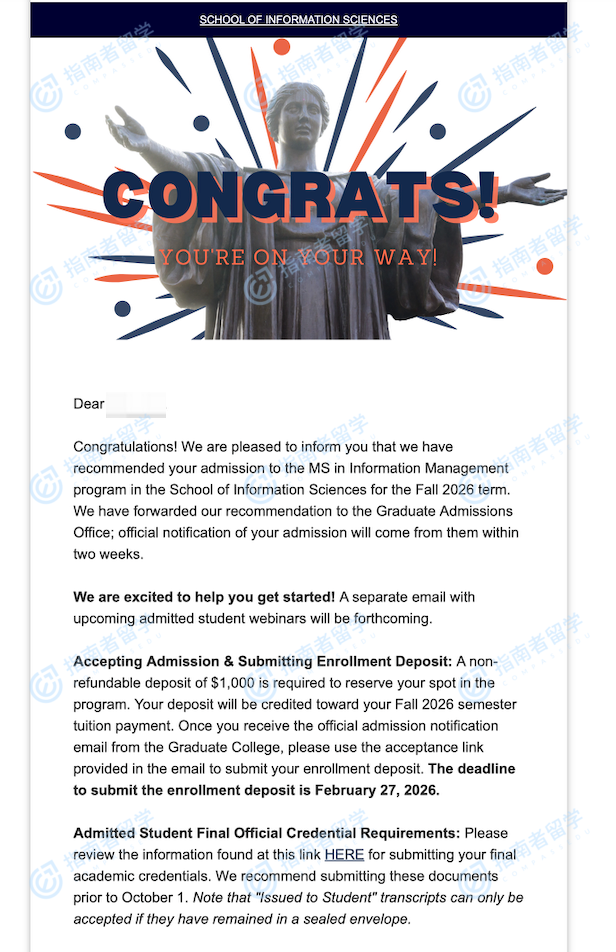 伊利諾伊大學(xué)香檳分校信息管理碩士研究生offer一枚