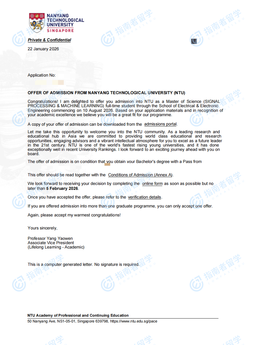 南洋理工大學(xué)信號(hào)處理和機(jī)器學(xué)習(xí)理學(xué)碩士研究生offer一枚