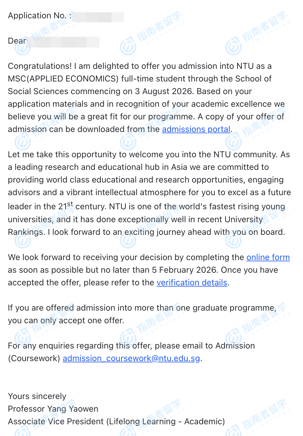 南洋理工大學(xué)應(yīng)用經(jīng)濟(jì)學(xué)理學(xué)碩士研究生offer一枚