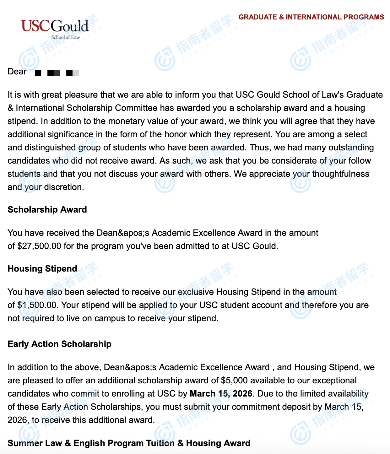 南加州大學(xué)法學(xué)碩士研究生offer一枚