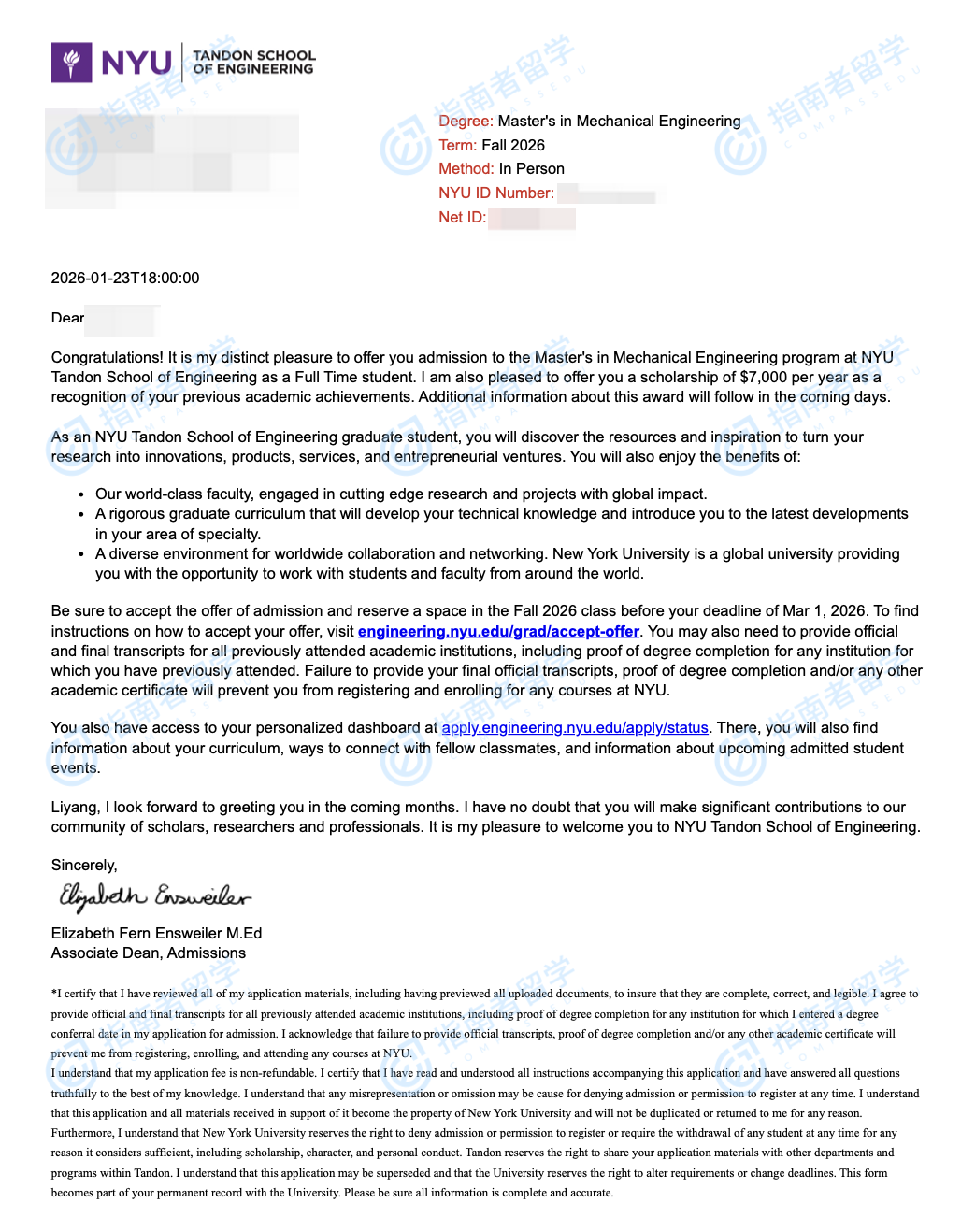 紐約大學(xué)機(jī)械工程理學(xué)碩士研究生offer一枚