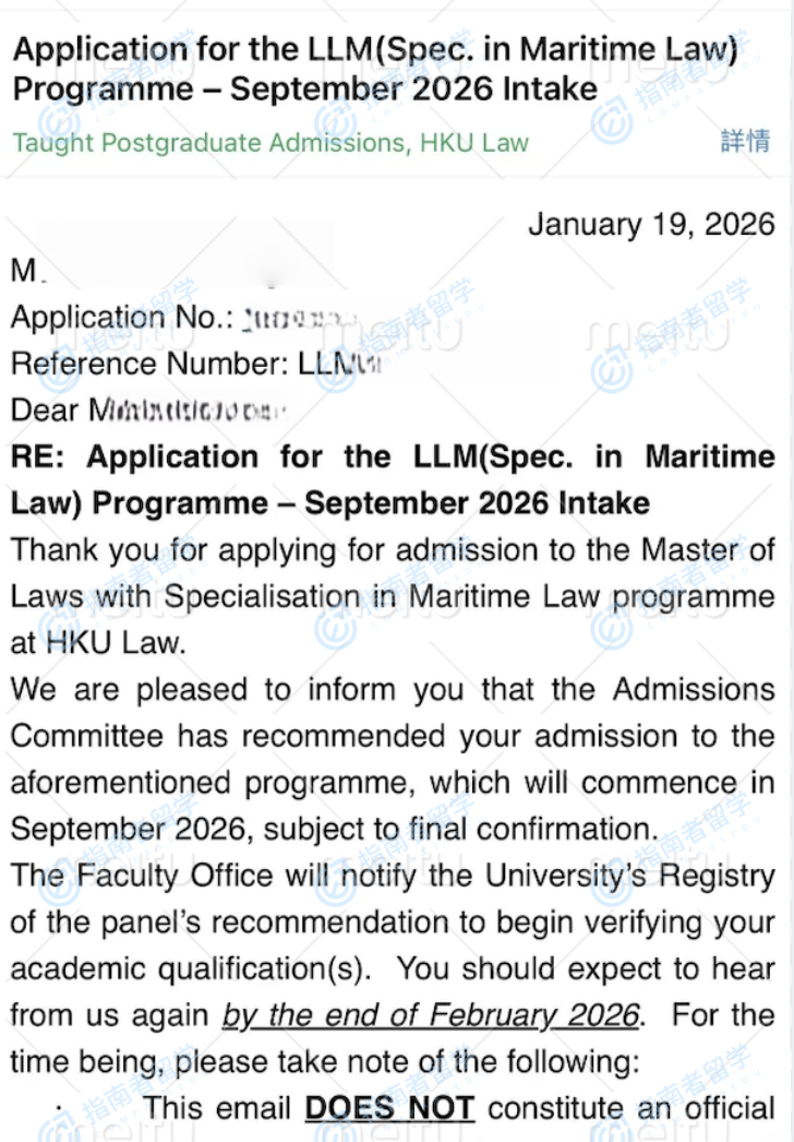 香港大學法學碩士(常規(guī)或小方向)研究生offer一枚