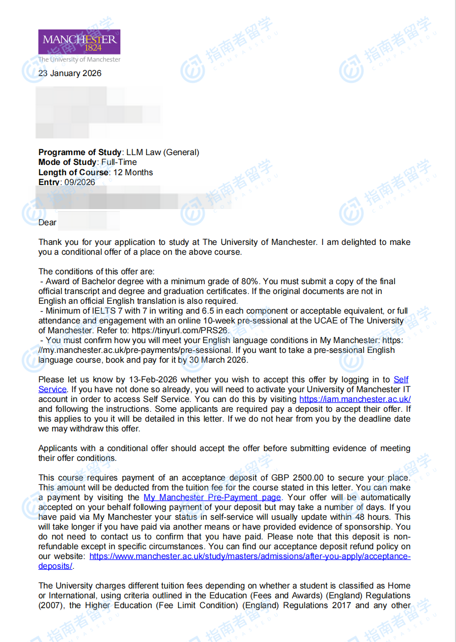 曼徹斯特大學(xué)法學(xué)碩士研究生offer一枚