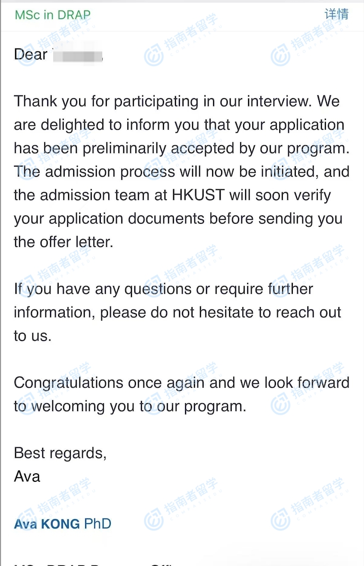 香港科技大學(xué)藥物監(jiān)管事務(wù)與政策理學(xué)碩士研究生offer一枚