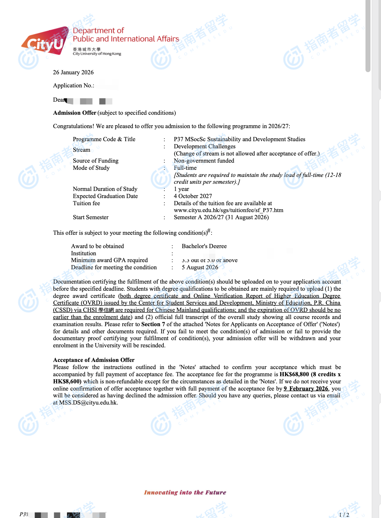 香港城市大學可持續(xù)與發(fā)展研究社會科學碩士研究生offer一枚
