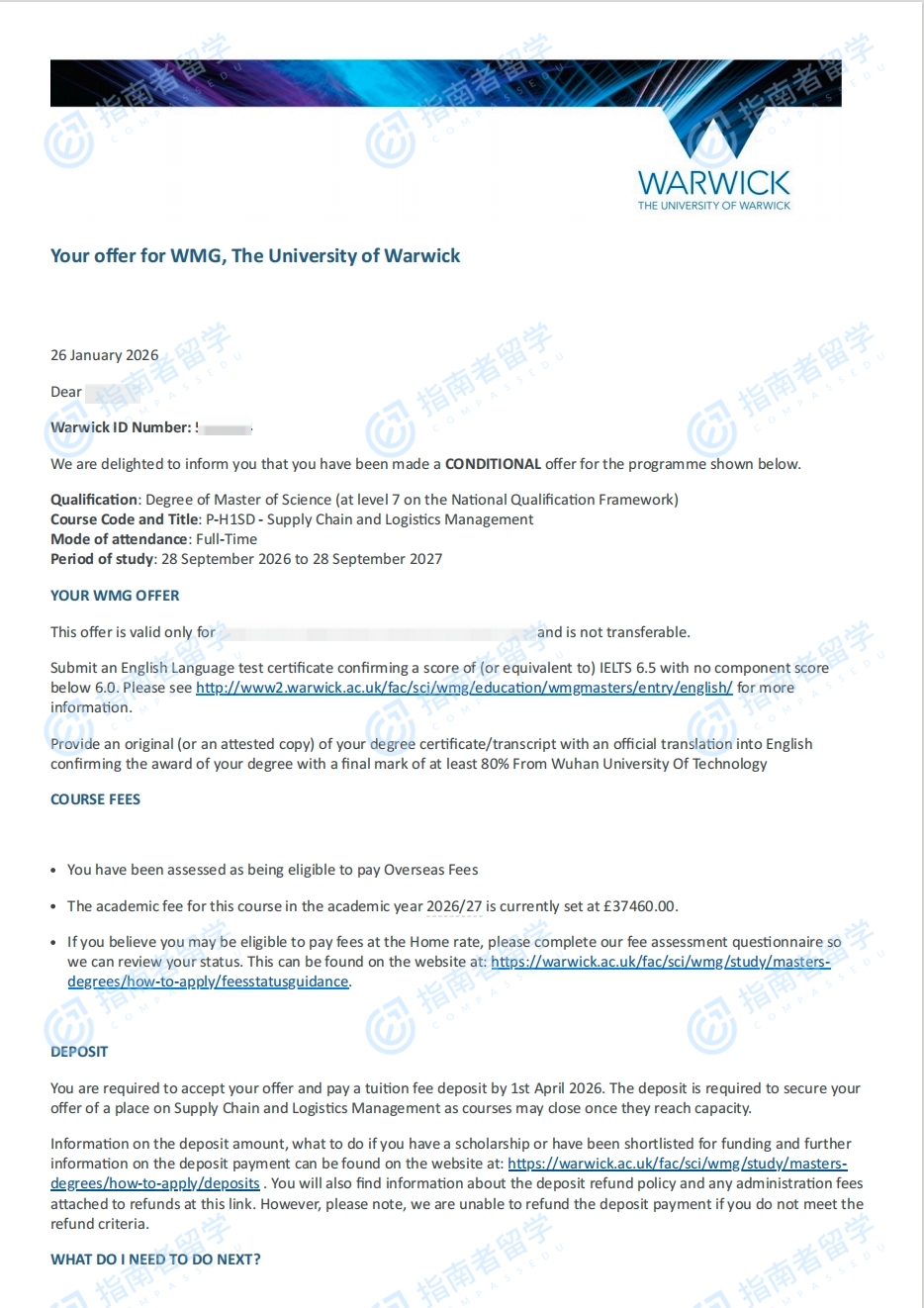 華威大學(xué)供應(yīng)鏈與物流管理理學(xué)碩士研究生offer一枚