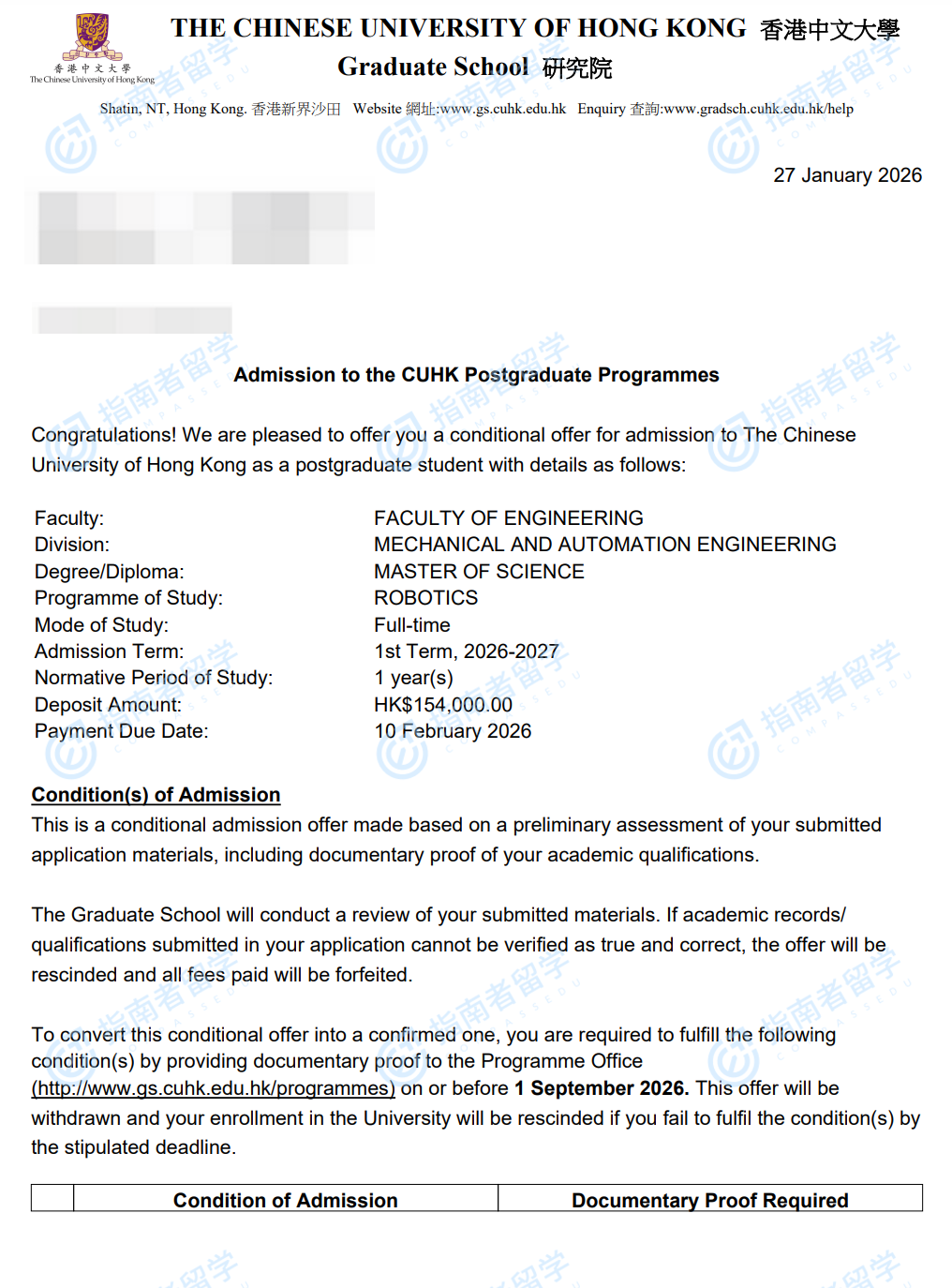 香港中文大學(xué)機器人學(xué)理學(xué)碩士研究生offer一枚