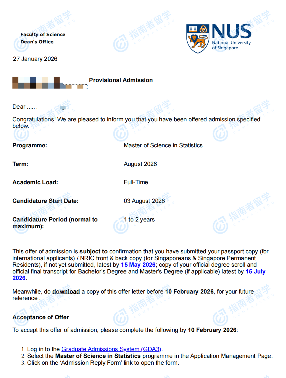 新加坡國立大學統(tǒng)計學理學碩士研究生offer一枚